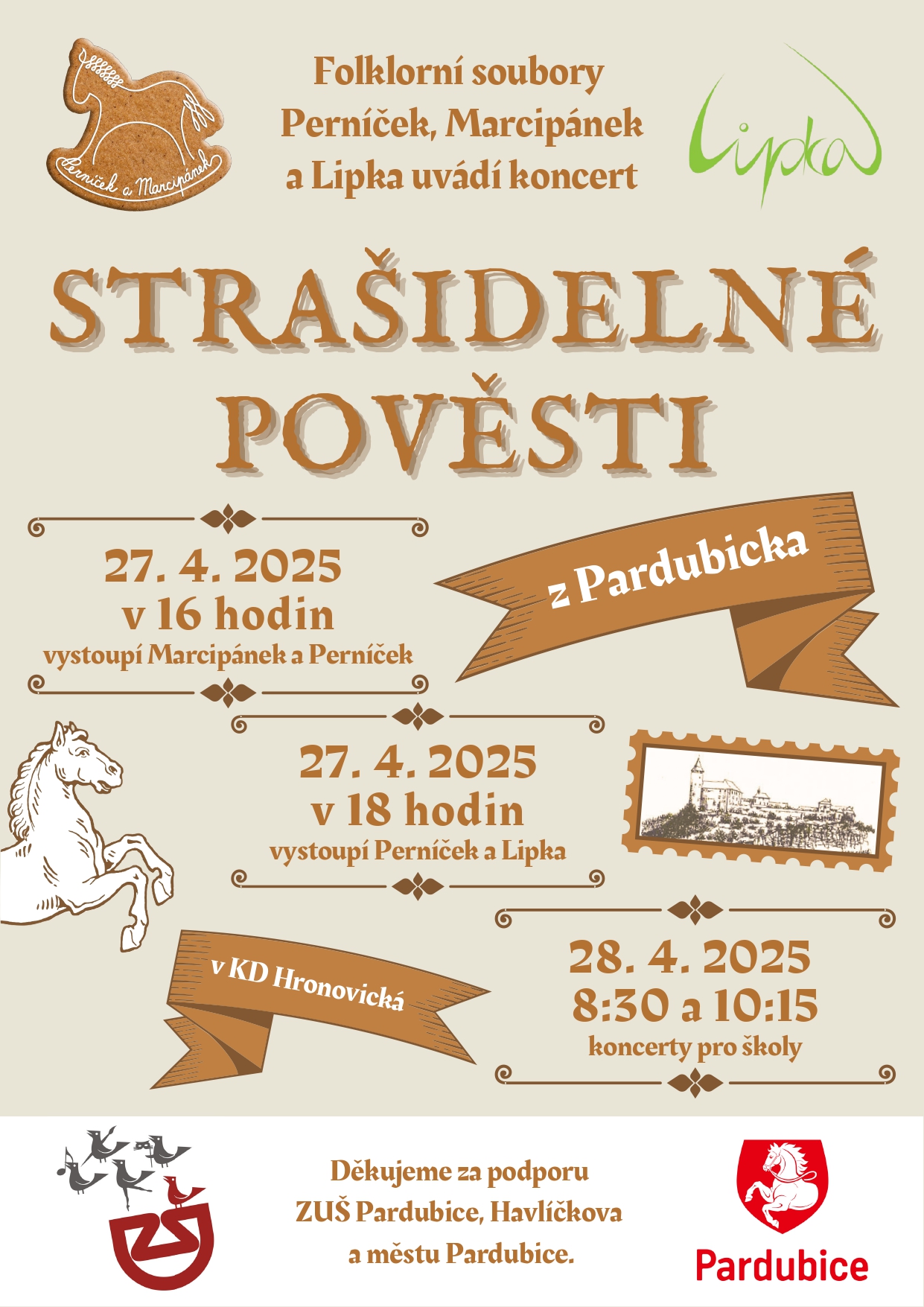 Dva celovečerní koncerty zaměřené na pověsti z Pardubic a blízkého okolí, kdy je každé taneční nebo muzikantské číslo inspirováno jednou pověstí.