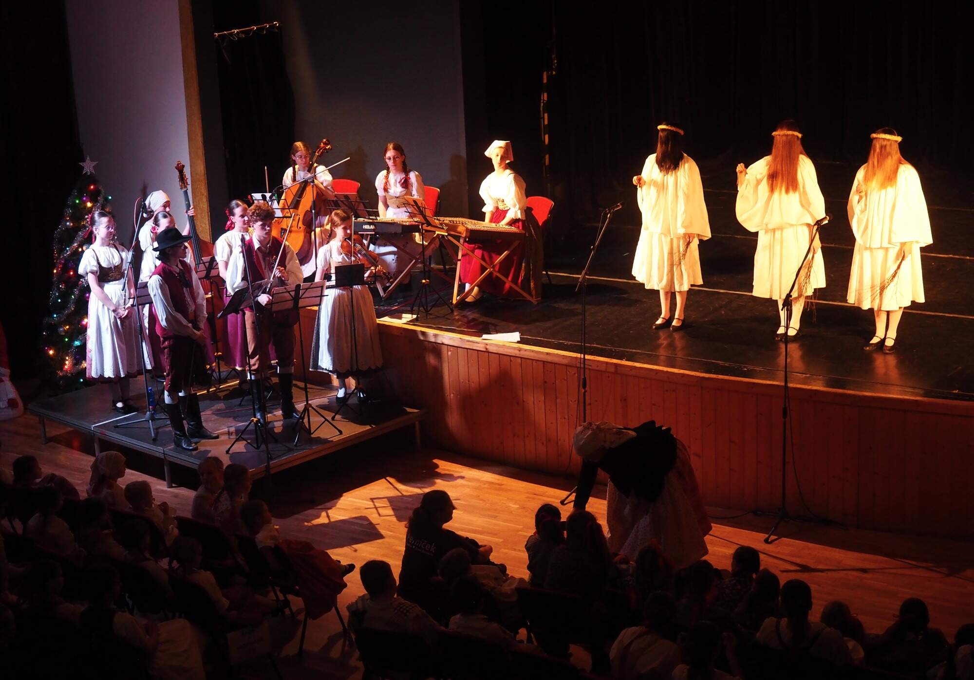 Příchod svatého Mikuláše do stavení byl pro děti velmi napjatě očekáván vždy. V životě naší tradiční společnosti i dnes. Během koncertu jsme nahlédli nejen do dušiček napjatých dětí, ale i na nebe mezi anděly a k čertům do pekla. Všude probíhaly přípravy na Mikulášskou obchůzku. Následně přišel i sám svatý Mikuláš… Když pak Mikuláš odešel, začali se Vánoční trhy, kde jste mohli koupit vše potřebné pro pečení cukroví, vánoční ozdoby, betlémy, prostě vše potřebné pro přípravu krásných Vánočních svátků. Proto byla i tržnice nedílnou součástí našeho koncertu. Premiérově jsme uvedli pásma: Než přijde Mikuláš, Andělská abeceda,Pekelný mariáš a Mikulášský jarmark. |